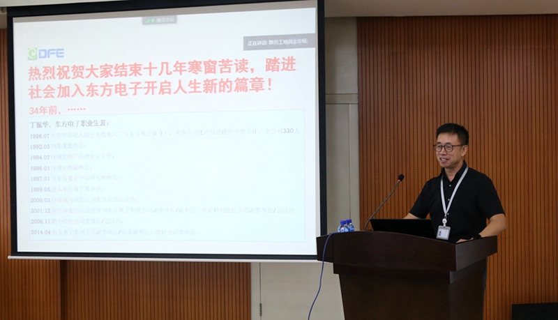 集团公司党委副书记、工会主席李成山结合互动游戏,生动阐释了东方的企业文化内涵,通过身边榜样人物的介绍,激励新员工深刻理解践行企业文化。李书记鼓励新员工在东方这个新的发展平台上,立足本职工作岗位,坚持不懈精确创新,始终保持澎湃的工作激情,始终保持开放协作的心态,始终守住诚信的底线,为企业发展做出贡献,用实际行动回报社会。