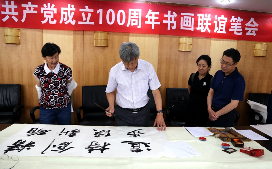 为庆祝中国共产党成立100周年,回顾党的奋斗历程,歌颂美好新时代,助力公司企业文化建设。6月24日,开源建工集团有限公司、烟台市老年书画研究会、烟台市老干部志愿者协会共同举办“庆祝中国共产党成立100周年联谊书画笔会”。本次活动共有18位县处级退休老干部书画家参加。