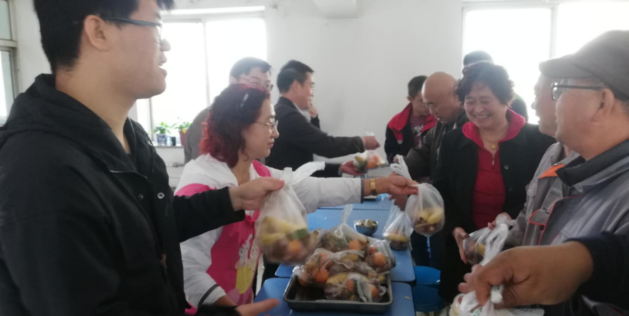 25日上午,海华公司党支部、印度公司党支部等一行8人,带着慰问品来到位于上夼西路的芝罘区环境卫生管理中心食堂,代表集团公司向辛勤工作的环卫工人表达节日祝福和亲切慰问。支部党员与志愿者们一起,为环卫工人包饺子;观看志愿者们为环卫工人献上的歌曲、京剧、诗朗诵等精彩节目,最后在全体合唱《我和我的祖国》、《环卫工人之歌》,气氛喜悦而热烈,让环卫工人们感受到社会浓浓的关爱之情。
